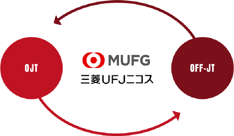 三菱UFJニコスでは、「人材育成」を全ての起点と考え、各職場における日々の業務を通してスキルアップにつなげる「OJT」と、研修・自己啓発など業務外における教育研修の「OFF-JT」によるプログラムを軸とした、多彩な人材の育成に取り組んでいます。さらに、将来を見据えたキャリアプラン形成の一助となるような各種制度も取り揃えています。